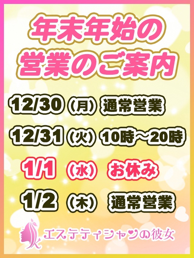 年末年始 | 女性詳細 | 久喜西口 メンズエステ 完全個室型プライベートサロン 「エステティシャンの彼女」